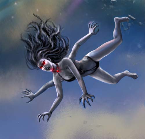 A Black Hat of the Hammer class, she was always considered a capable but fairly docile fighter, lacking in the dark ferociousness expected of Hammers. Unlike most Black Hats who live their lives in a dark nightmare, Beth’s soul sprouted on its own and, in the dark, she dreamed of finding a way out of the Black Abbess’ grasp. Sent to Metatron with a number of other “marginal” Black Hats to recover the wayward Sygillis, she saw a bright figure falling from the sky. The figure was Captain Davage, having been sucked out of the breached SEEKER. Beth engaged Davage in battle and was easily defeated by him. She was greatly surprised when Davage did not kill her. Badly wounded, Davage comforted, carried and defended her throughout her ordeal in Metatron.