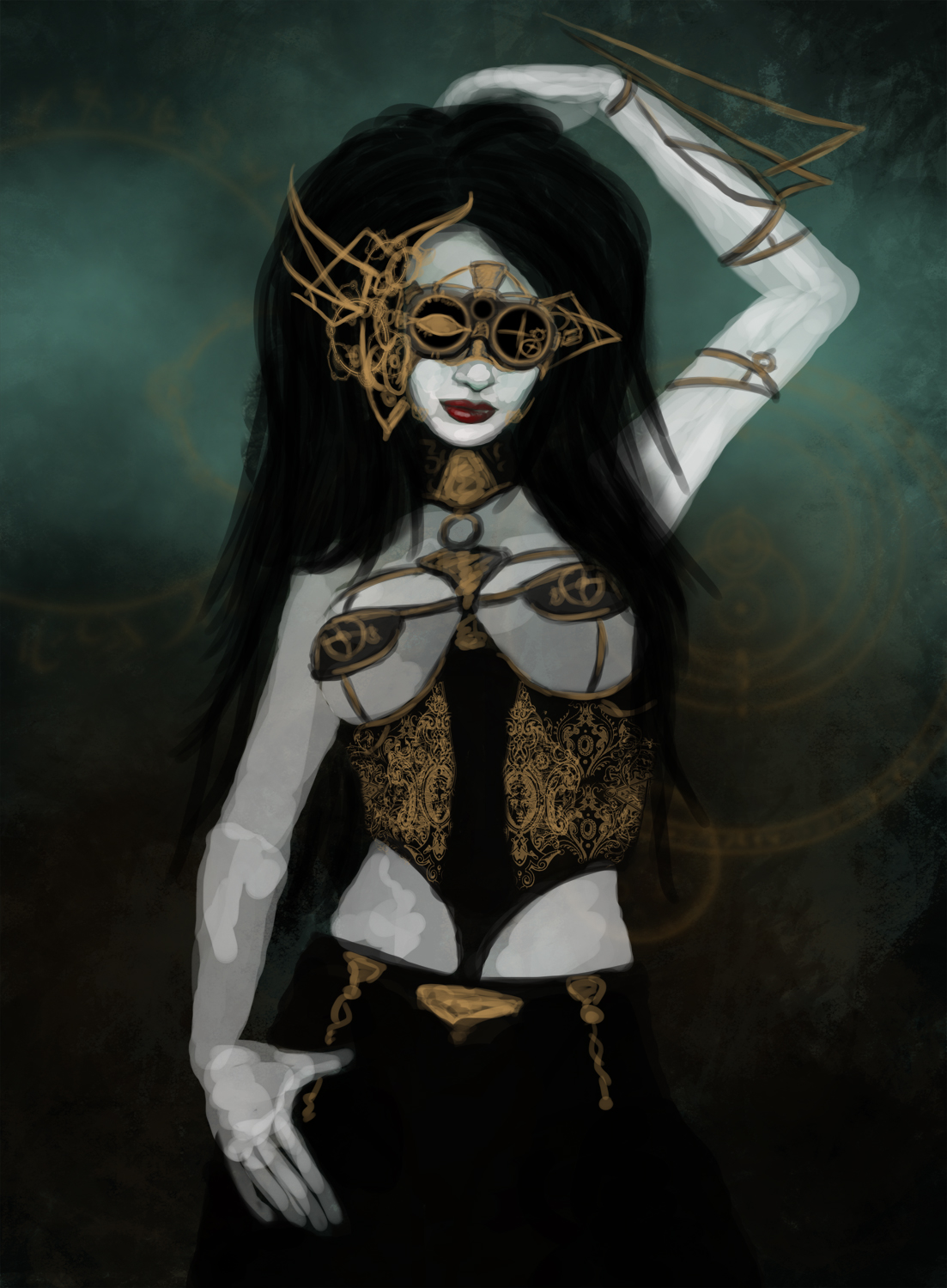 MELAZARR OF CAROLINE (Xaphan): Heiress of the Xaphan House of Caroline, born in the vast halls of Wilhelmina Castle. She is the 25th daughter of the current line. She has one father and ten mothers–the Carolines often indulge in the practice of gene-splicing to produce the most desirable of children. One genetic flag the Carolines always opt for is the potential for Arcane-Interface.